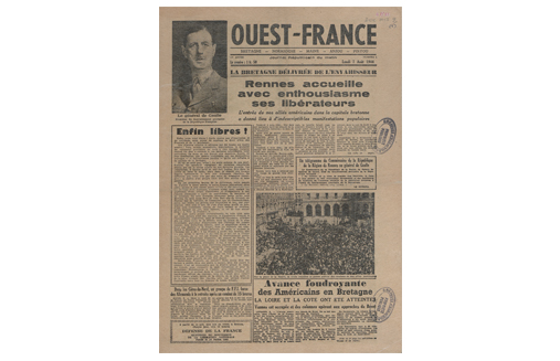 Une du Ouest-France du 7 août 1944 concernant la Libération